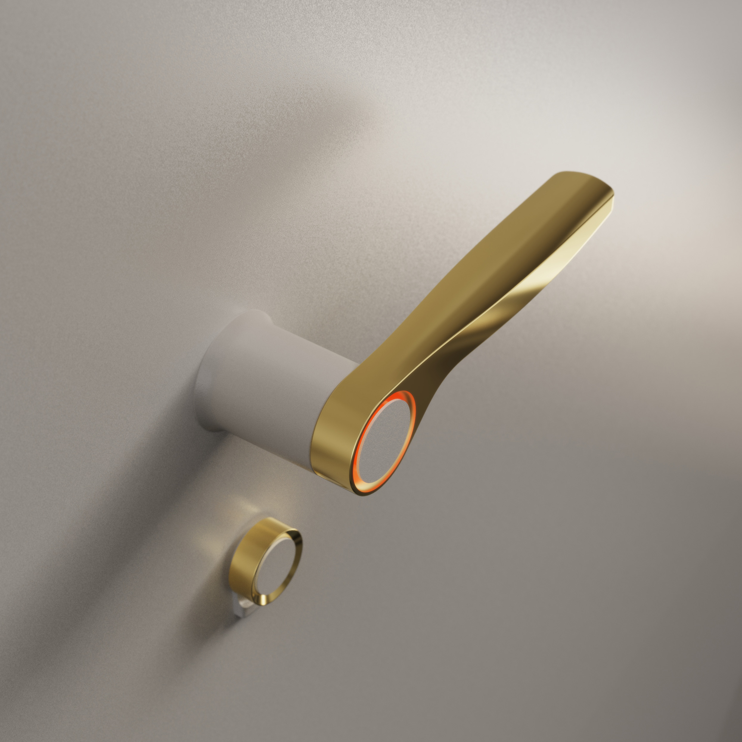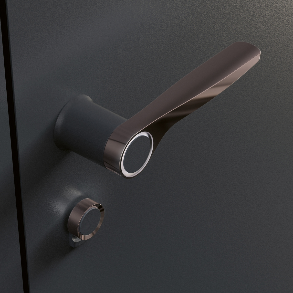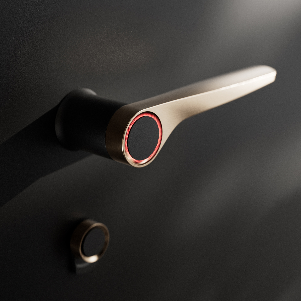 Izdelek uvaja inovativno anatomijo: fiksirano steblo, premikajoči se ročaj in svetlobno jedro. Slednje je novost v dveh pogledih – komunicira zaklenjenost, njegov center pa je gumb za elektronsko odpiranje brez fizičnega napora, namenjen otrokom, starejšim in osebam s fizičnimi omejitvami. PVD obdelava jekla zagotavlja dodatno odpornost proti obrabi in svilnato površinsko teksturo.