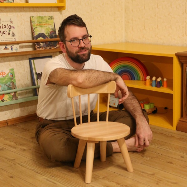 Sem Primož Polh, dipl. inž. lesarstva. Za mano stoji več rodov mizarjev. Kntregca je mizarska ustvarjalnica otroških stolčkov in mizic. Je zgodba, ki jo od leta 2022 pišem skupaj z ženo Ano. Ogromno izkušenj sem pridobil v svoji prvi službi pri mizarstvu Bolčič, kjer sem imel možnost sodelovati z oblikovalci pohištva svetovnega kova. Prvi večji uspeh Kntregce je bil leta 2023, ko sem bil s 3 stolčki izbran kot razstavljavec na prireditvi Čar lesa. Naslednji večji uspeh se je zgodil istega leta, ko sem bil prejemnik strokovnega priznanja Top ideje 23, v sklopu Sejem Ambient in Dom Plus.