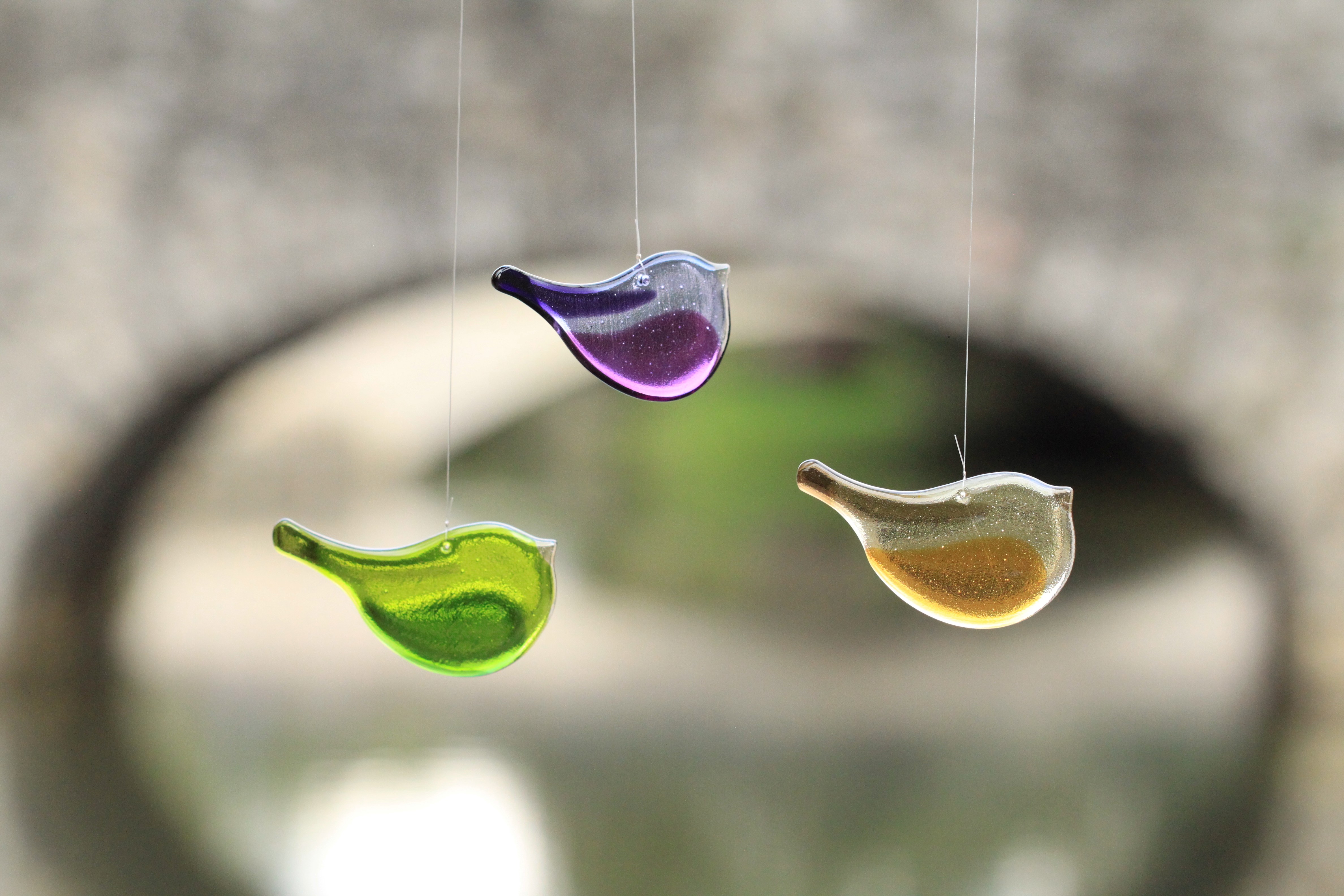 Stekleni ptički v različnih barvnih kombinacijah in dveh velikostih so izdelki, ki poživijo dom in polepšajo prostor z barvito prosojnostjo žlahtnega stekla. Izdelek je plod večletnega razvoja od preprostega do izčiščenega izdelka. Oblikovanje je avtorsko in izvirno. Vsak ptiček je izdelan iz 6-7 kosov stekla, ročno izrezanih iz barvnih steklenih plošč. Koščke pobrusim in sestavim, sledi 1. taljenje v peči. Izdelek pobrusim, oblikujem konture, izvrtam luknjico, nato sledi ponovno taljenje. Izdelek je prejel certifikat Rokodelstvo Art&Craft Slovenija, št. mnenja: 9395-04/24.