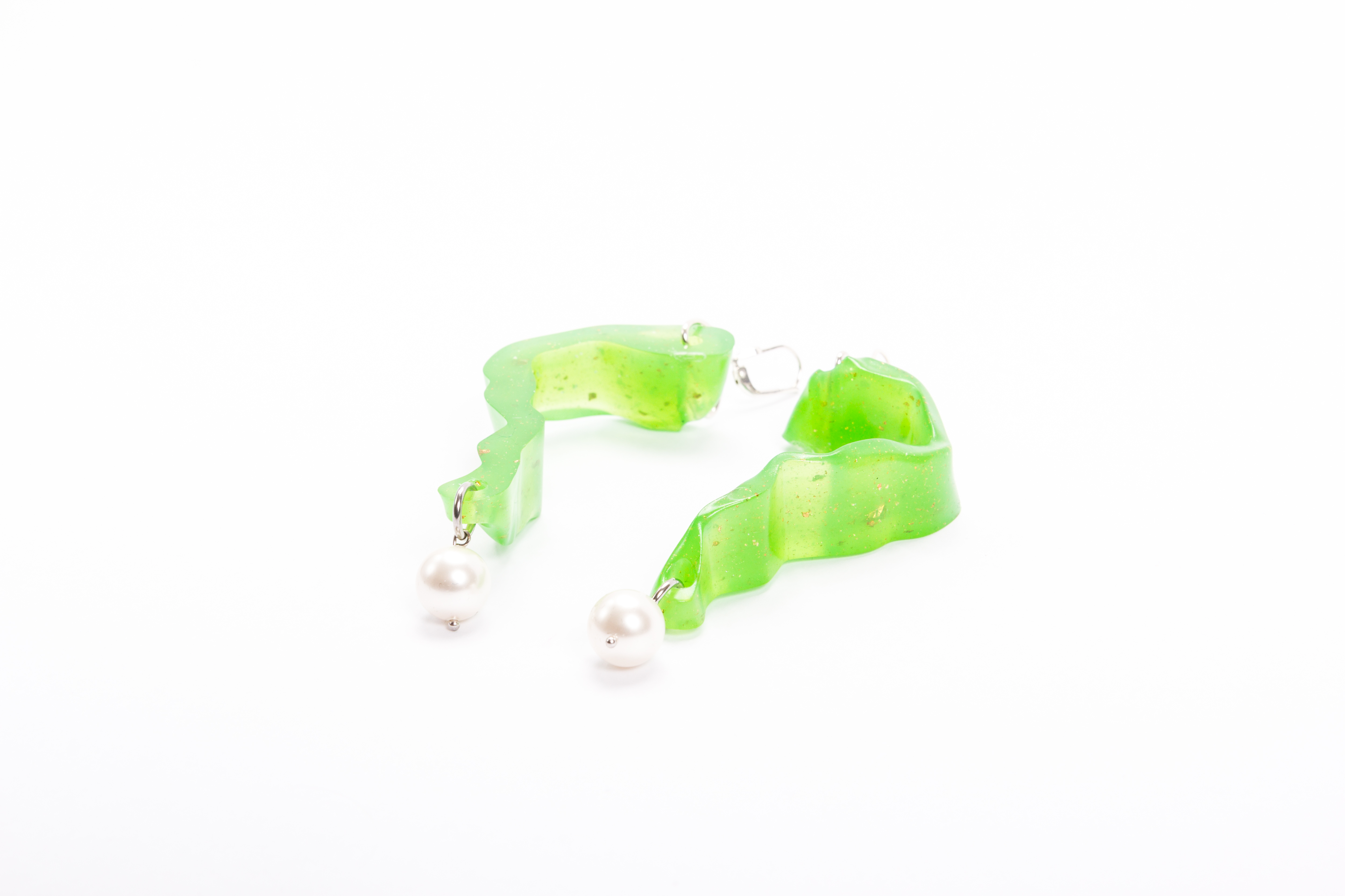 SoFTI AQUA, SIJAJ VODE NA UŠESU. Uhani iz recikliranega materiala odpadnih jogurtovih lončkov.